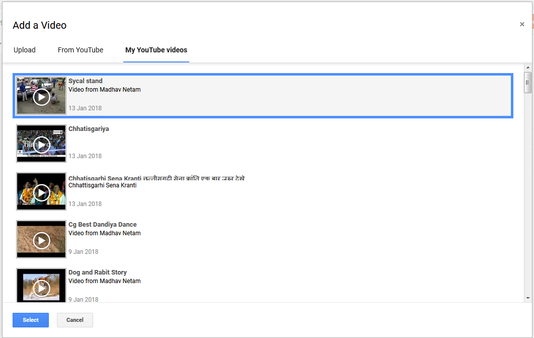 Step 03.Fir Youtbe Channel Par Click Kijiye Fir Appka Youtube Channel Ka Saare Video Aa Jaayega. Ya Se App Jis Video Ko Select karna Chahte hai Use Select Kar Fir Select Par Click Kijiye. Fir Ye Video Appko Post Me Dikhne Lagega.