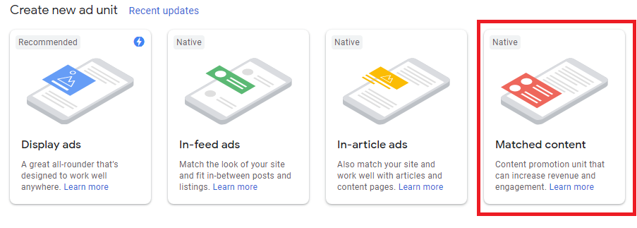 Fir Aapko Waha Pe Sabhi Types Ke Ad Unit Dikh Raha Hoga Unme Se App Matched Content Dikh Rha Hoga Is Tarh Se Use Click Kre.