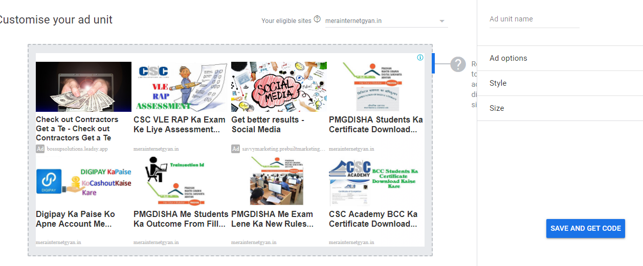 Yaha Pe Aapko Add Unit Name Me Kuch bhi Name Likh Dena Hai Fir Save And Get Code Par Click Karna Hoga.