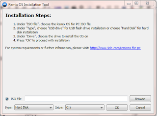 इसमें आपको Browse पर Click करके Remix OS का ISO File को Select करना होगा |