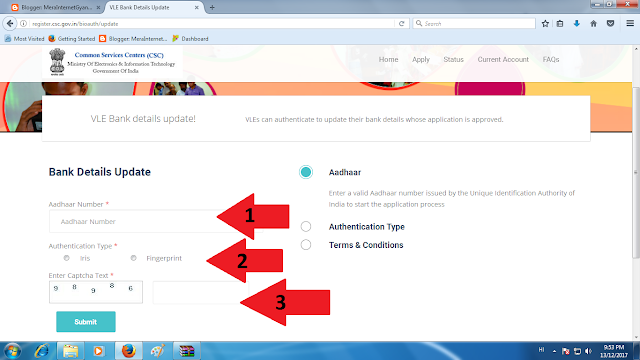CSC का Bank Account Change करने के लिए यहाँ Click करे