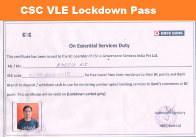 To Dosto Ye Tha CSCVLE Ka Lockdown Pass . Dosto Is Post Ko Apne VLE Bhaiyo Aur Social Media Me Share jarur Kare.