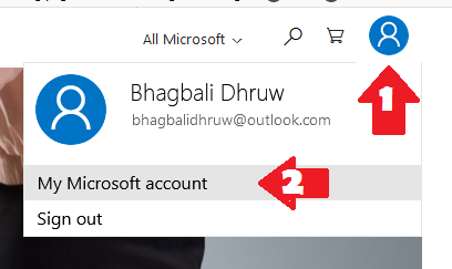 Jisme Aapko Profile Button Par Click Karna Hoga Fir My Microsoft Account Par Click Kare.