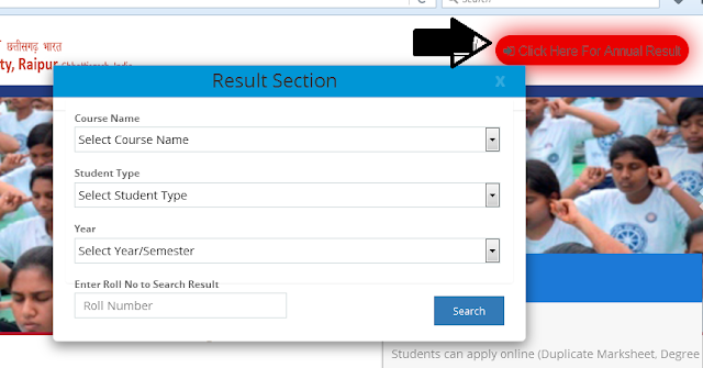 Jisme Aapko Click Her For Annual Result Par Click Karne Par Ek Window Khulega Jaise Upar Image me Hai Usme Aap Apna Sara Details Fill Kare Jaise Course Name , Students Type , Years Aur Roll Number Fir Search Kar de Iske Baaad Dosto Aapke College Ka Result Aapke Samne Aa Jayega.
